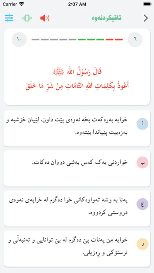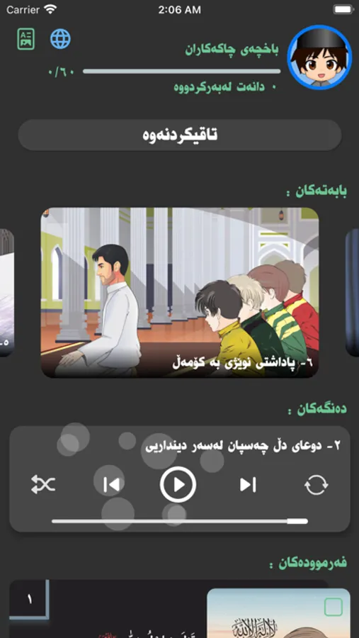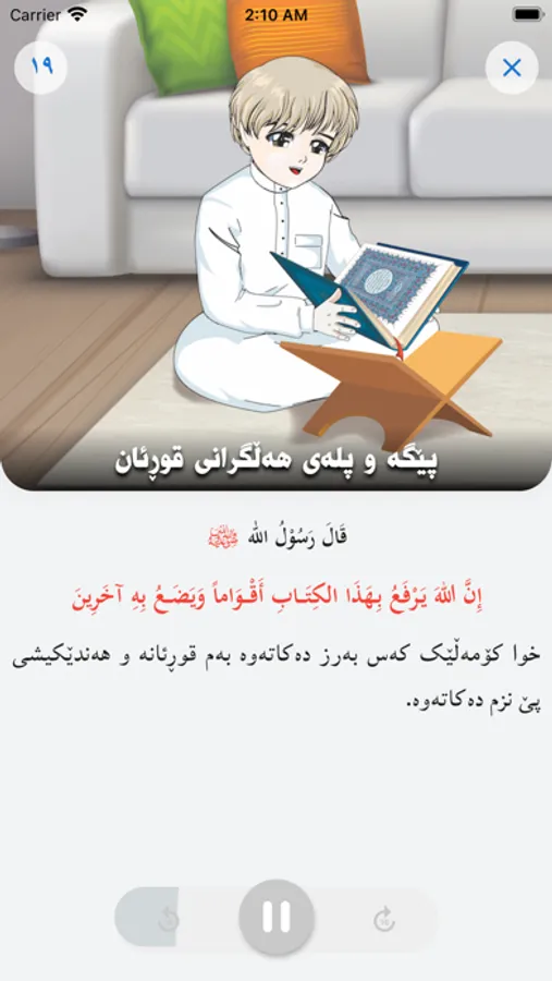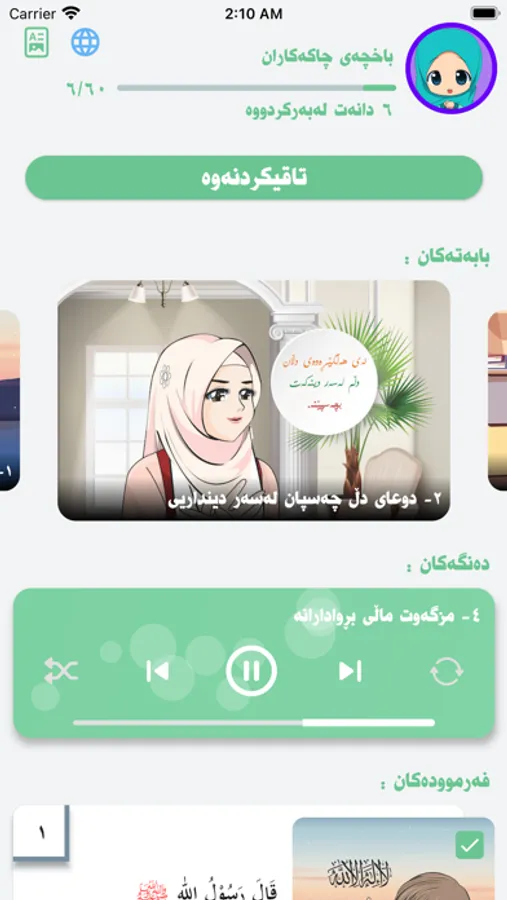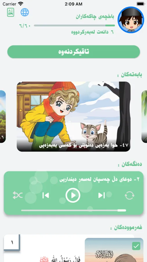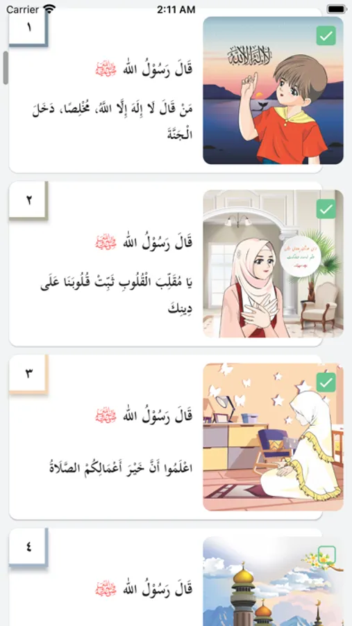 ئەم ئەپڵیکەیشنە پێکهاتوە لە ٦٠ فەرموودەی پێغەمبەر (صلی الله علیه و سلم)، کە بریتیە لەمەنهەجی پێشبڕکێی قۆناغی شەشەمی پڕۆژەی بەهای فەرموودە تایبەت بەمنداڵان و نەوجەوانان.