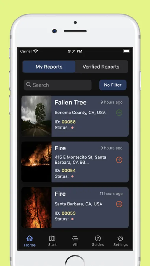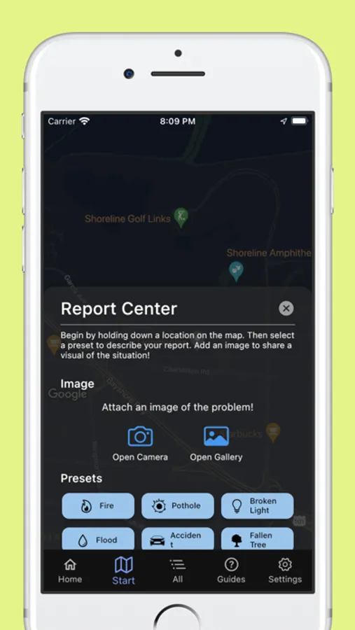 - Report issues in your area (fires, floods, potholes, road blocks, and more)