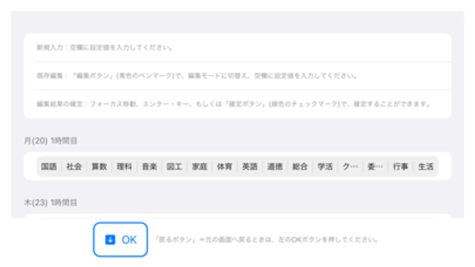 - 最新のバックアップデータ(手動取得)から、その日の時間割を表示します