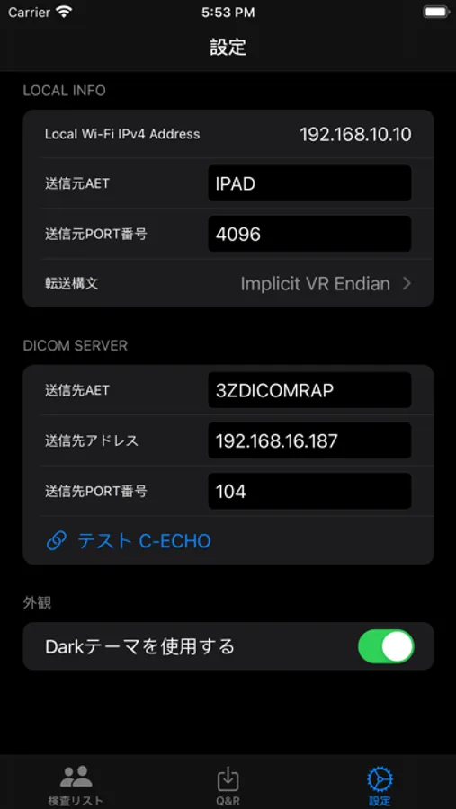 DICOMサーバと接続し、画像を検索し端末にダウンロードして表示します。