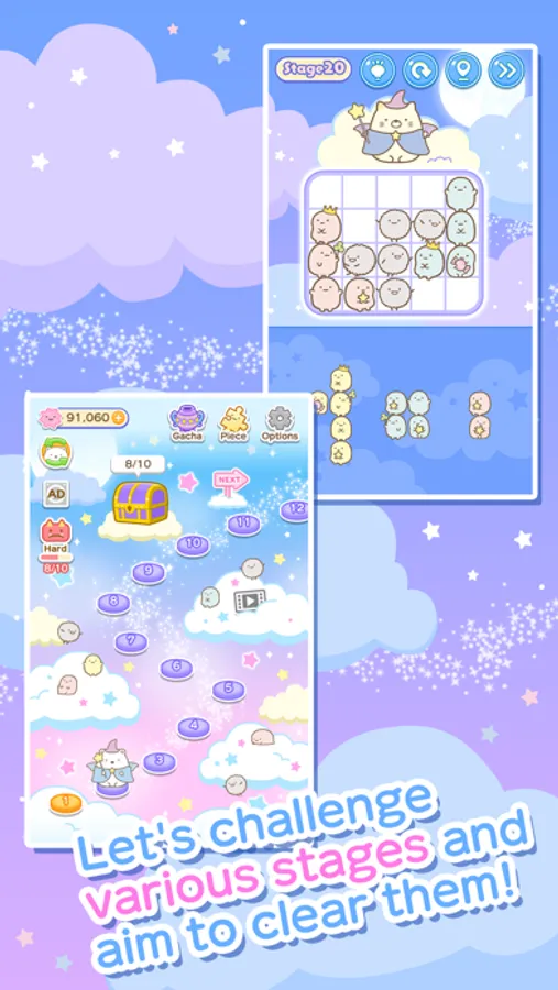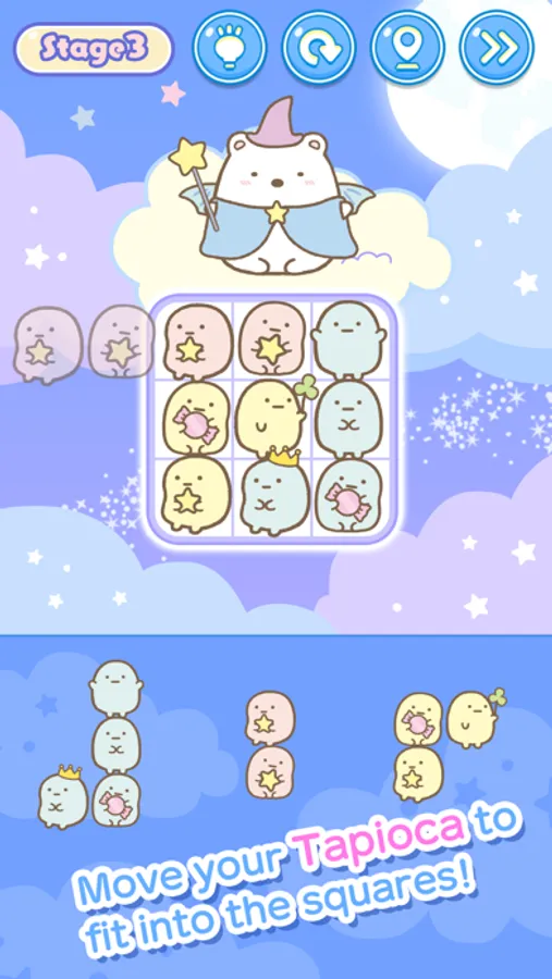 Collect candies after clearing the stages to get Sumikkogurashi friends who will cheer for you!