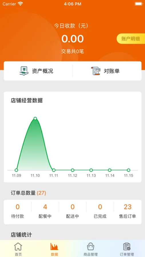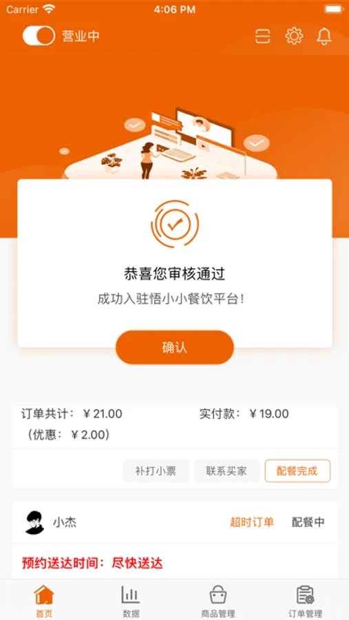 合作的餐饮商家使用的食堂订单管理软件。
