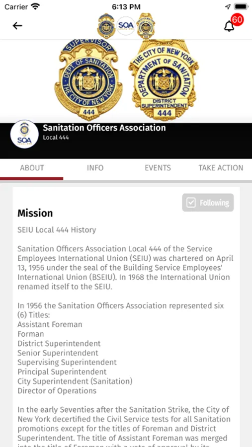 SOA Local 444 App allows for real time member engagement. Launch the app, follow and view the latest news, events, volunteering, job & training opportunities. Quickly swipe through content - bookmark what is of interest, toss aside what isn't. Users can easily act and engage on important initiatives. Never miss important updates again!