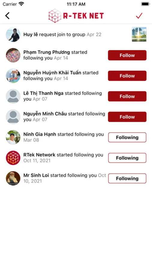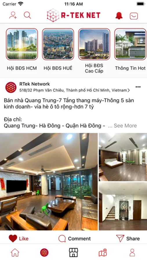 RTek Network tích hợp nền tảng mạng cộng đồng, tương tự một mạng xã hội riêng cho ngành BĐS, giúp các thanh viên cộng đồng thống nhất thông tin trao đổi công việc tránh thất lạc dữ liệu, lạc trôi thông tin, tạo cơ hội bán hàng theo mạng xã hội ( Social Selling)