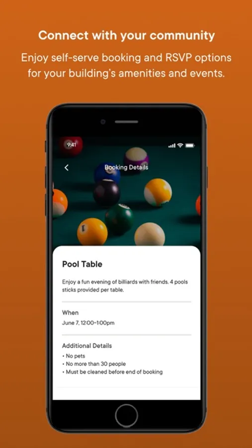 Amenity Bookings: Want to use the new roof-top deck? How about booking some space for a meeting? Easily book the amenities in your building when you need them.