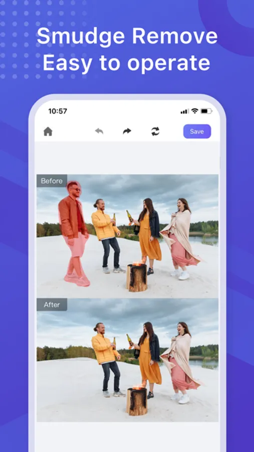 * Erase objects, remove passers-by, debris, and blemishes on the face