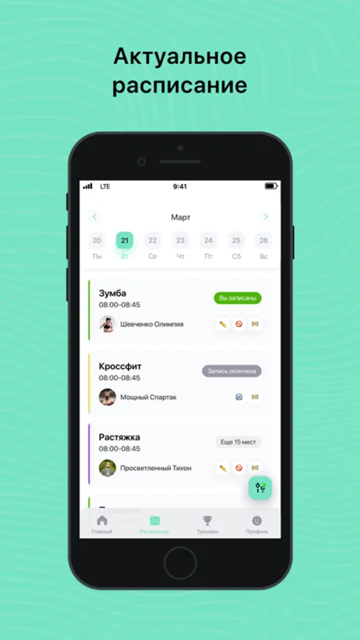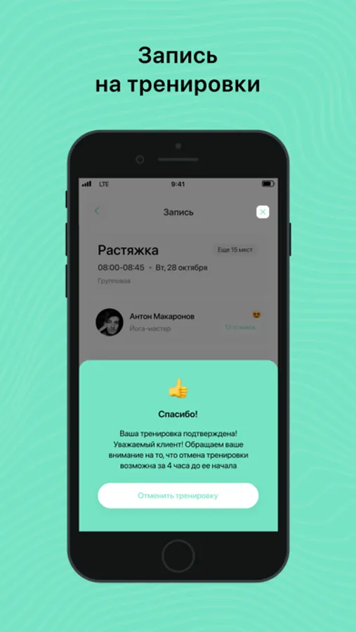 - Получать PUSH-уведомления о предстоящей тренировке за 4 часа;