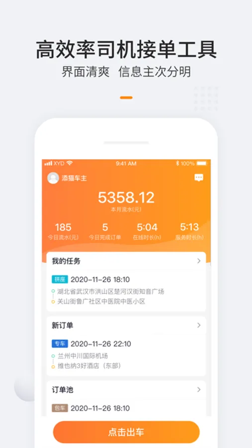 1. 通知功能:新订单语音和弹窗通知,司机快速接单
