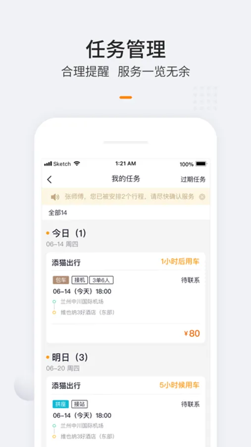 添猫车主是为司机打造的一款专属软件,提供专业的订单通知、行程管理、账单统计等功能,协助司机日常管理服务订单,可以提高工作效率避免出错。