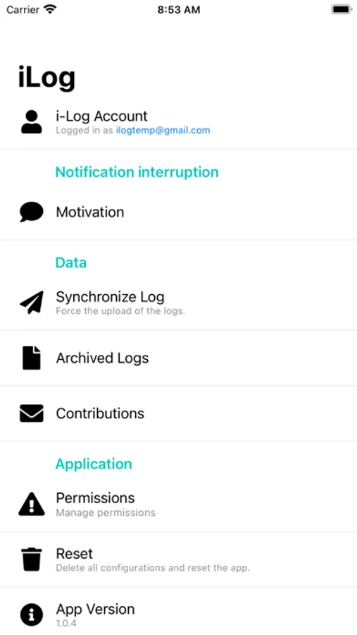 iLog is an application developed by the Knowdive Group of the Department of Information Engineering and Computer Science of the University of Trento. The application collects data from the sensors of the device. The user should give consent to the collected data for using the application that always defines the scope of the data collection. Also, there is the possibility to receive questions based on a schedule defined before the beginning of the Data Collection.