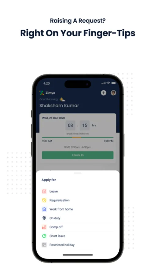 Employees can clock-in for work, apply for leaves, access their documents, and communicate with their peers from our intuitive mobile app. The HR leaders can streamline their everyday HR tasks in a credible, coherent, and comprehensive manner with Zimyo’s modules that include:
