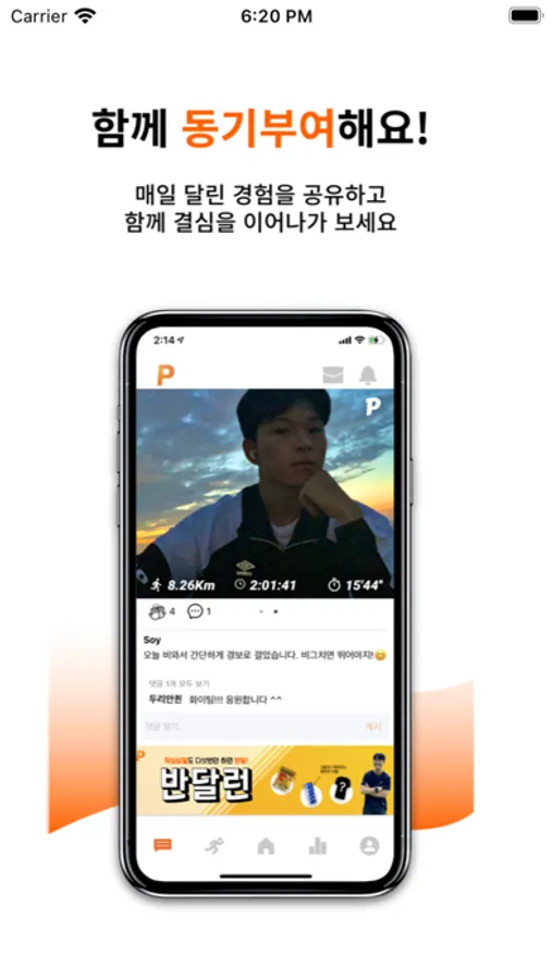 - 앱 내 피드에 올라오는 러너들의 사진, 글을 보며 박수 버튼을 눌러 운동을 응원하고, 직접 댓글을 남겨 운동 습관 만들기를 응원해주세요!