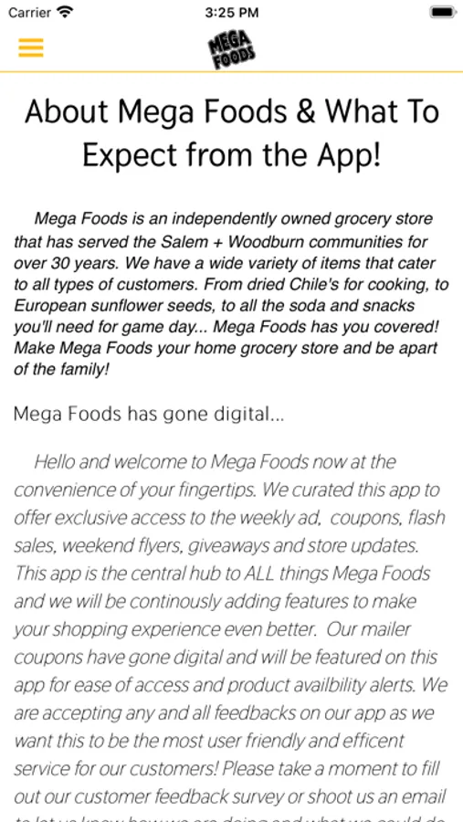 Everything you need to know about Salem and Woodburn Mega Foods all at your finger tips! Download the app for exclusive access to coupons, weekend sales, weekly ads, flash sales, store updates, new products, giveaways and so much more.