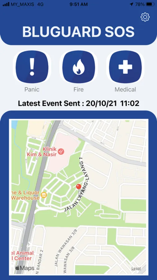 Bluguard SOS App is an emergency app that enables you to quickly send out your current GPS location along with your Panic/Fire/Medical event to the center. The operator at center will immediately process the incoming event and take action accordingly.