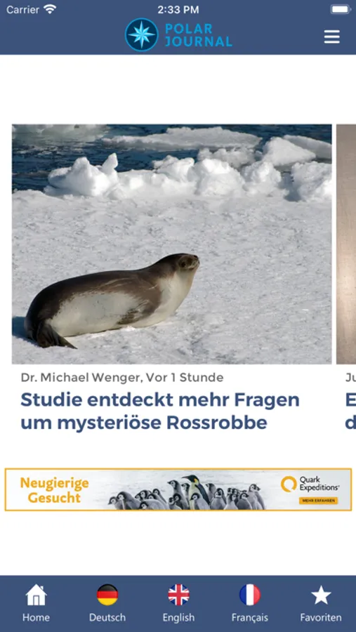In der PolarJournal-App finden Sie sämtliche Inhalte, die wir auf polarjournal.ch veröffentlichen, in Deutsch und Englisch und nach Kategorien geordnet. Sie können Artikel in der Favoritenliste speichern und Kommentare zu den Artikeln hinterlassen.