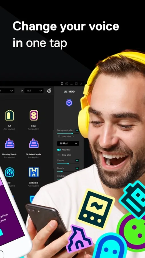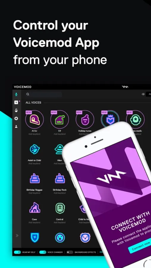 Voicemod Controller is the companion app for your Voicemod Desktop application. Once linked with your Voicemod account, it allows you to apply voice changers and play sounds directly from your phone.