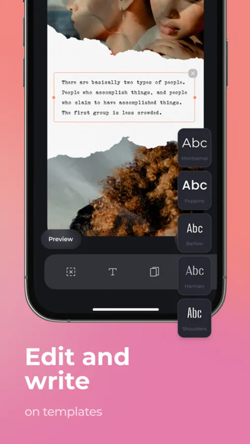 Fabula is more than just a design tool - it's your creative playground and story lab. Play around with opacity controls, try different font colors, or rearrange design elements - all it takes is a simple tap. You can add a personal touch to every design, making each one a reflection of your unique style.