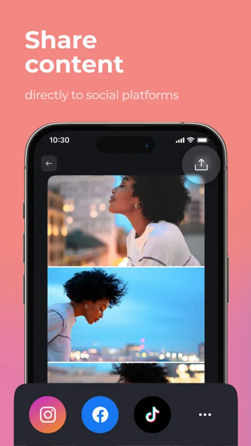 Once you're satisfied with your design, save it or share it! Fabula supports various export formats and aspect ratios, perfect for direct sharing on IG, FB, and any other platform of your choice. Create and share stunning content for all platforms in one go. Plus, you can always save your designs and pick up right where you left off later.