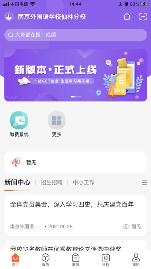 为南京外国语学校仙林分校在校师生提供校园生活、学习、办公等服务!
