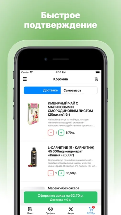 — Быстрый заказ с мгновенным подтверждением через приложение.