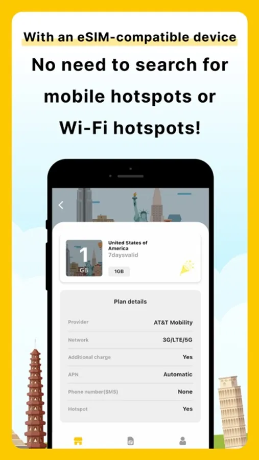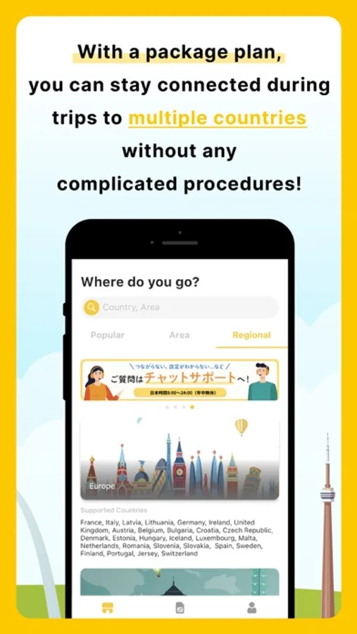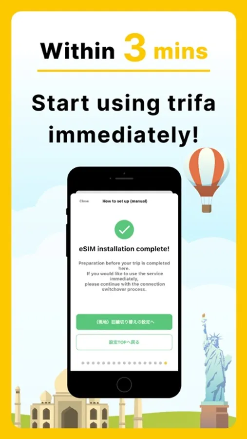 An eSIM is a virtual SIM (a chip that enables the use of a communication line) that is built into the customer's smartphone in advance. Simply download the eSIM for your destination via the app and you will be able to use the Internet immediately.
