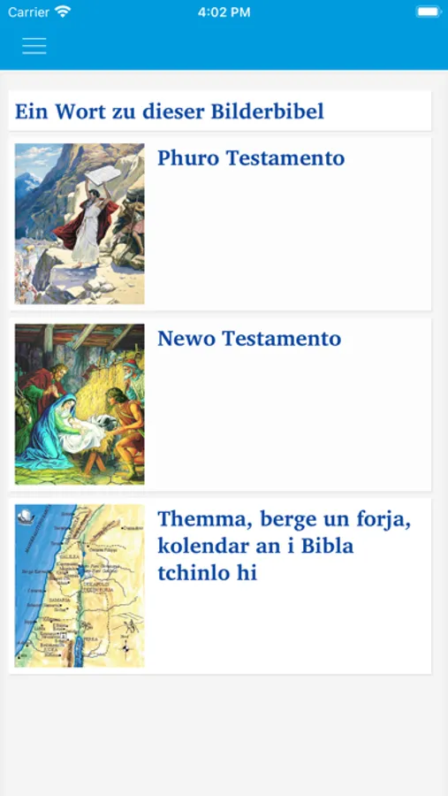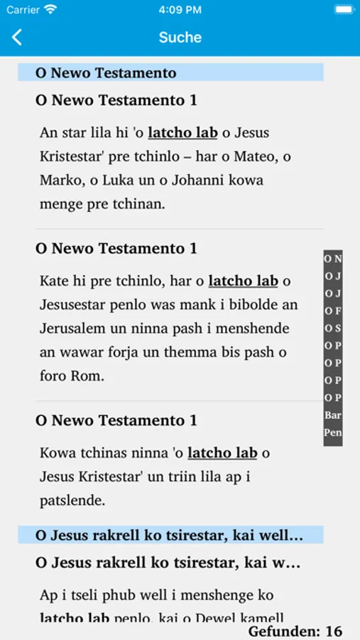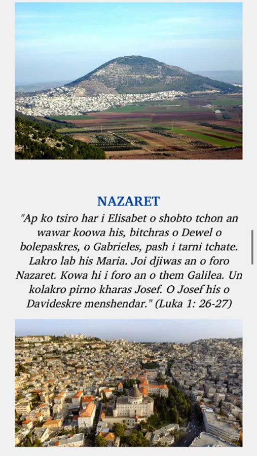 Die App enthält auch einige biblische Karten und Fotos von einigen Orten, die in der Bibel vorkommen. Man kann außerdem nach Wörtern oder Namen suchen und zu den zuletzt geöffneten Seiten zurückkehren.