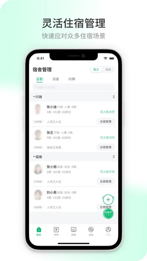 4. 可在线查看员工住宿情况和安排入住
