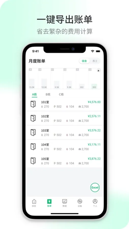 5. 可查看指定人员和宿舍月度账单