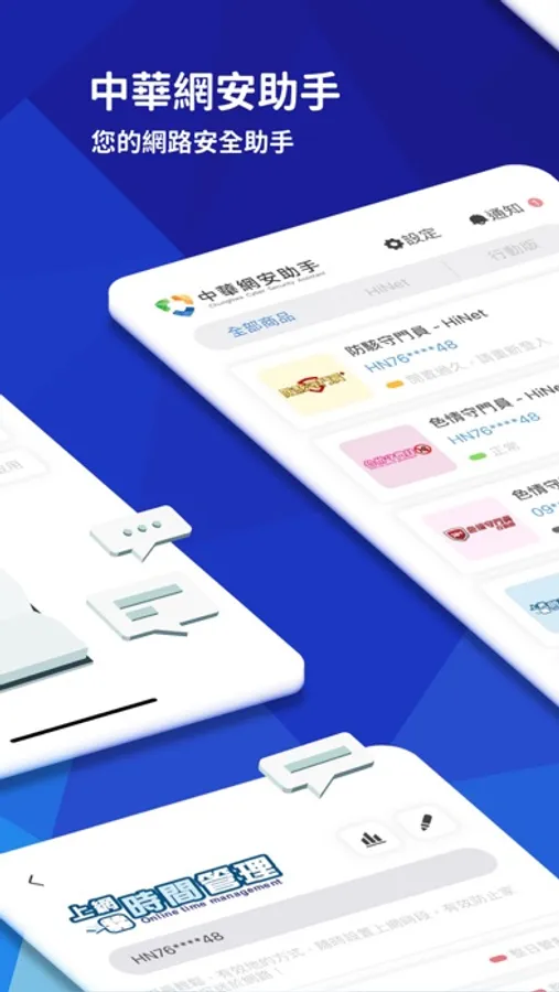 中華網安助手是一款整合中華電信色情守門員、上網時間管理、防駭守門員等網路安全加值服務的應用程式。