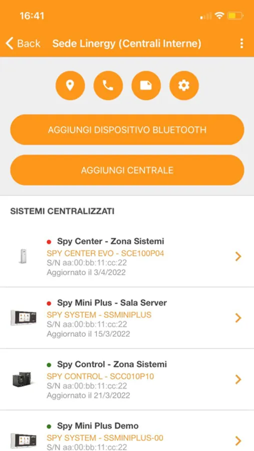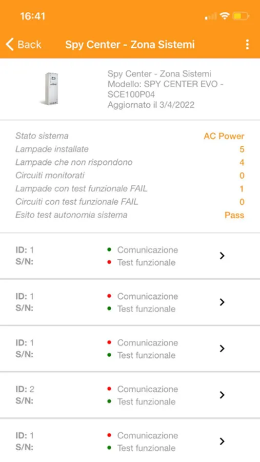 Tramite l’app Spy Manager è possibile acquisire gli apparecchi dell’impianto di emergenza che in maniera automatica verranno anche archiviati nel cloud per visualizzazione dello stato da remoto.