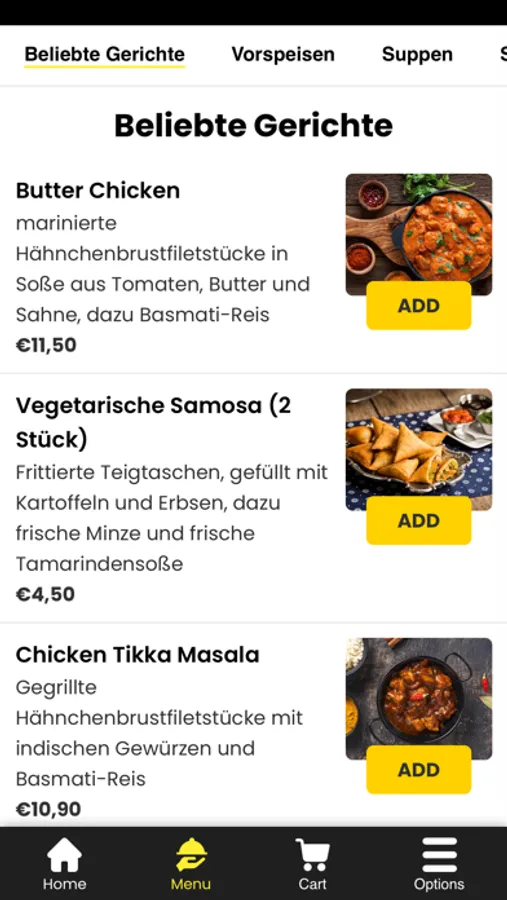 - Durchsuchen Sie die Speisekarte des Restaurants und sehen Sie sich alle anpassbaren Optionen im Voraus an