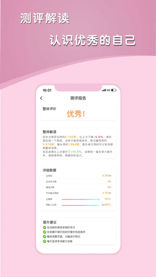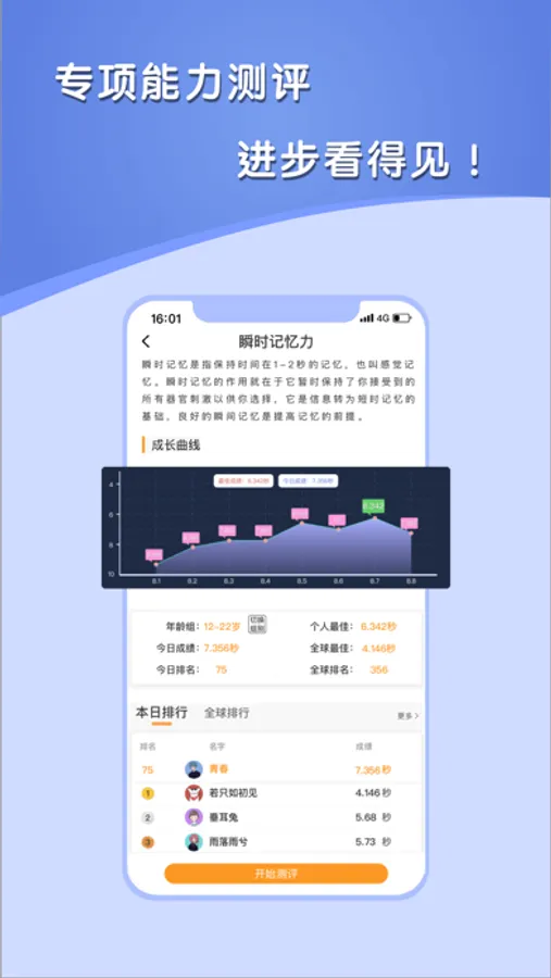 这里,你可以看到你的记忆力,专注力在全国打败了多少用户~