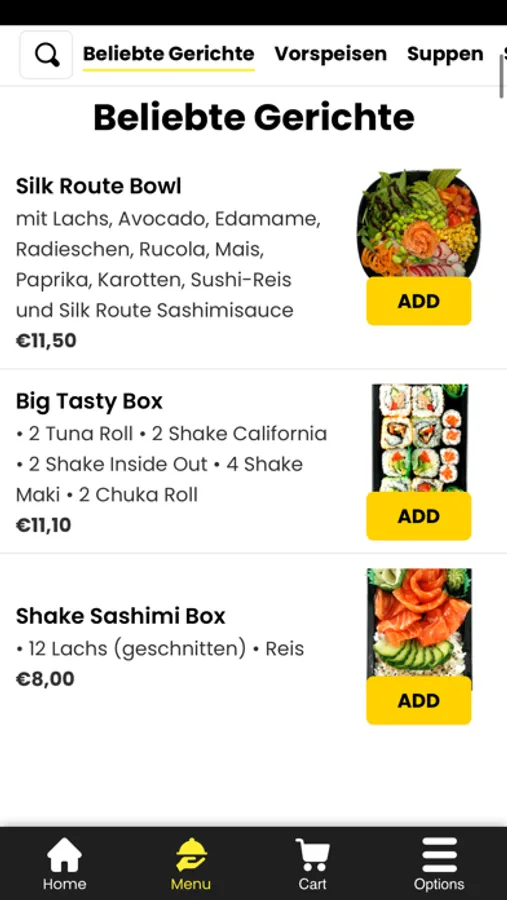 - Durchsuchen Sie die Speisekarte des Restaurants und sehen Sie sich alle anpassbaren Optionen im Voraus an