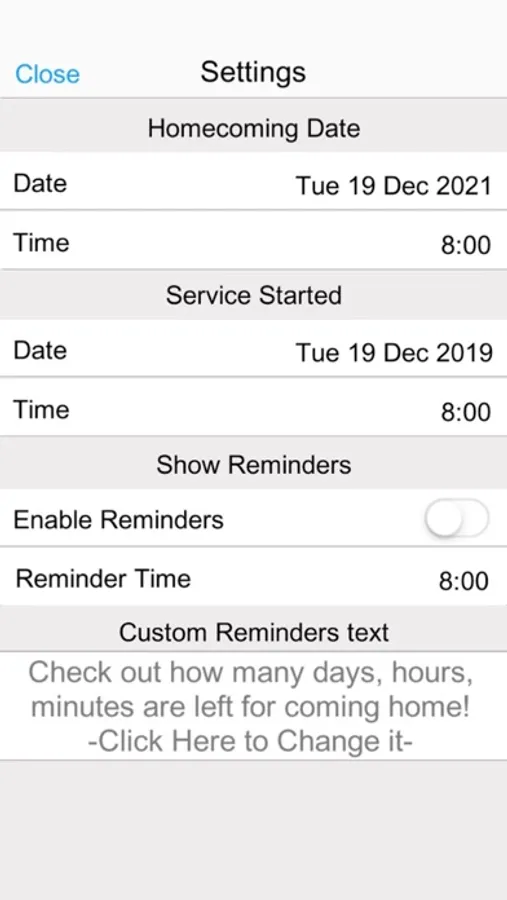 Set the date you're returning home and the app will immediately calculate the months, weeks, days, minutes and seconds until the big day