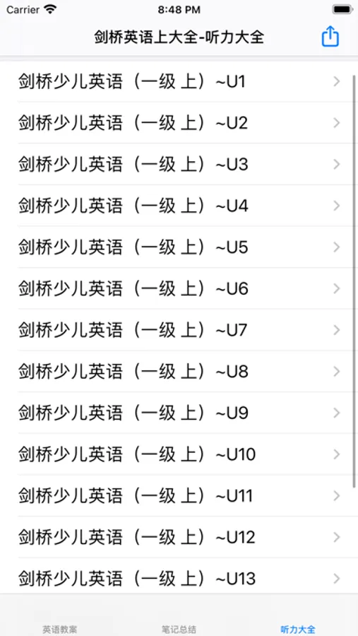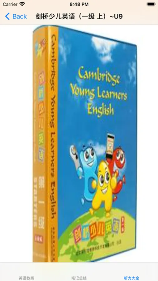 本应用全面涵盖剑桥少儿英语一级内容大全:包括教程、语法、听力总结,十分适合相关人士参考学习。