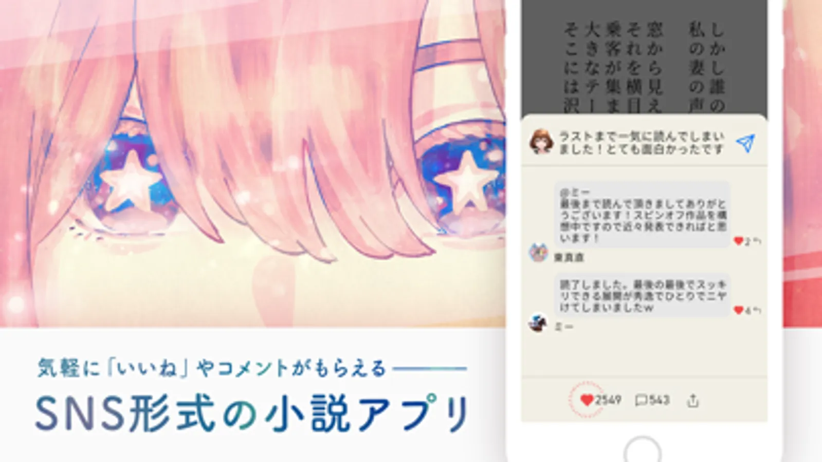 * ページをめくって読み進められるため、まるで実際の本を読んでいるかのように小説を楽しめます。