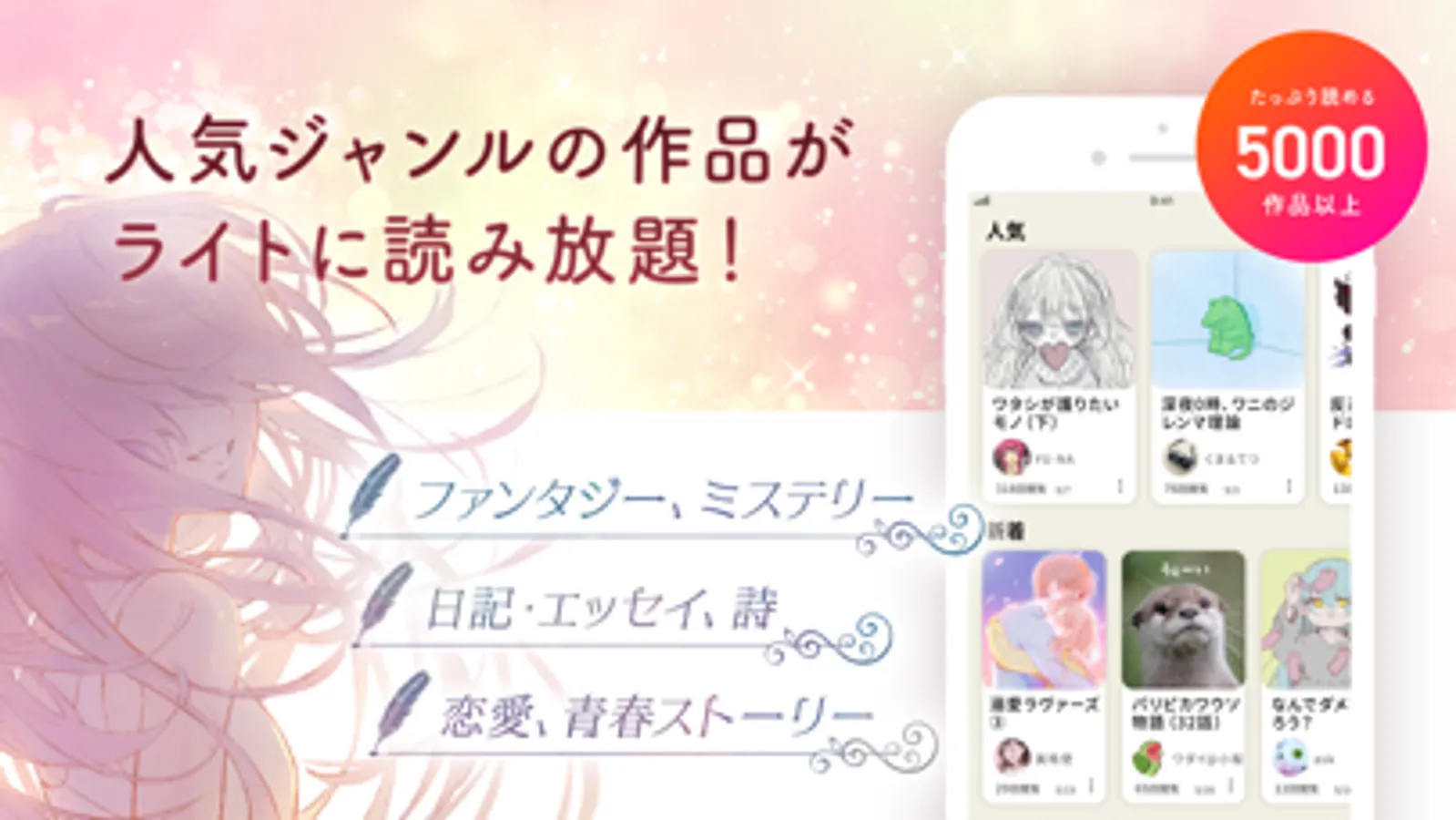 * ふと思いついた短編小説や自身の出来事を描いた日記小説などを投稿し、誰でも手軽に小説家になれます。