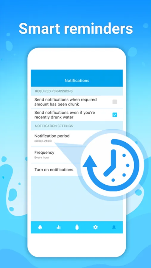 You are the one to set a suitable time interval for notifications and its frequency, so you can be 100% sure that the app won’t wake you in the middle of the night or intrude.