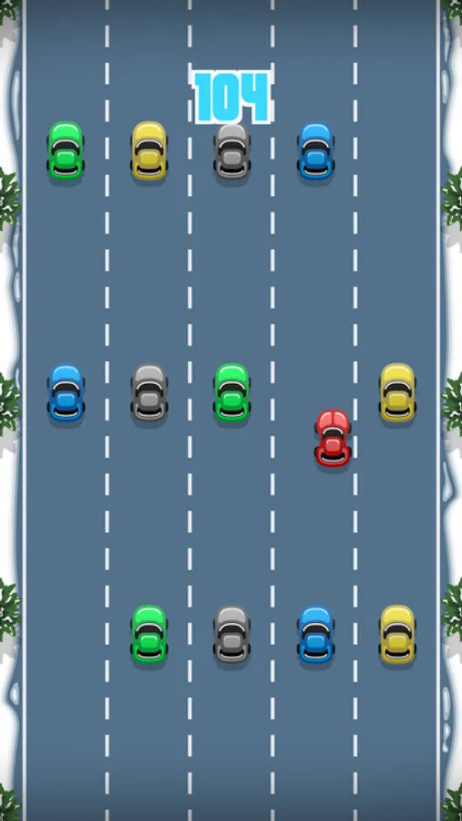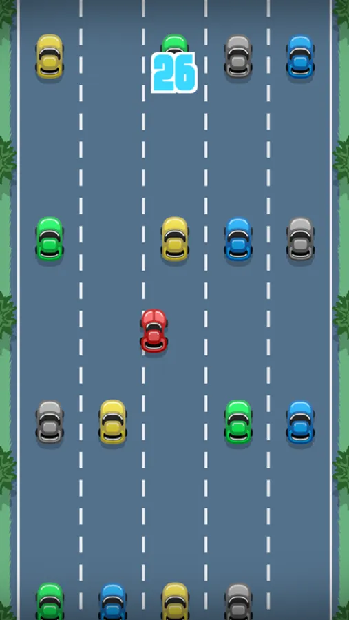 The goal is to go as far as possible without crashing into the rows of cars. Each successful overtake of a row adds to the score count.