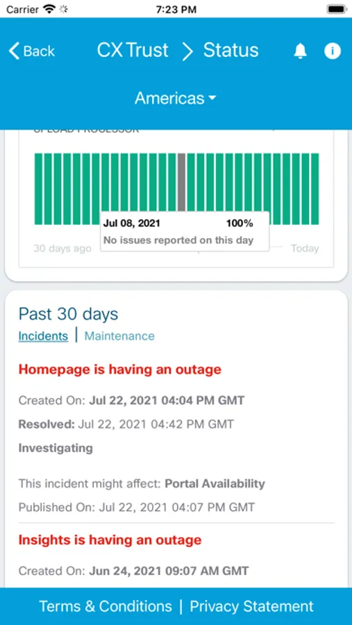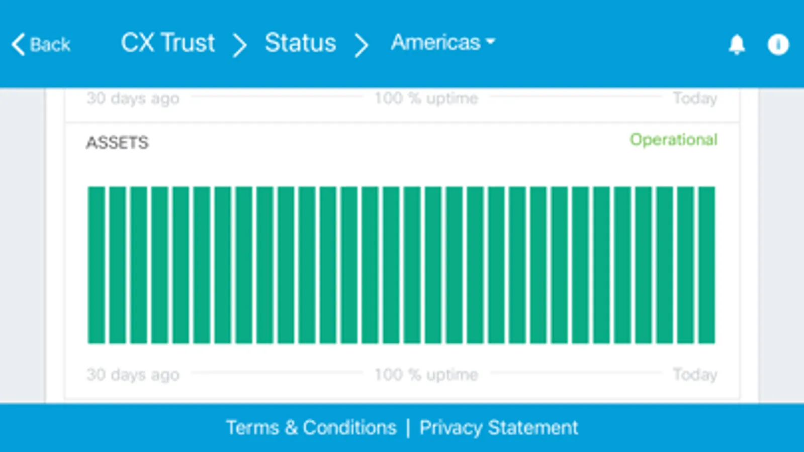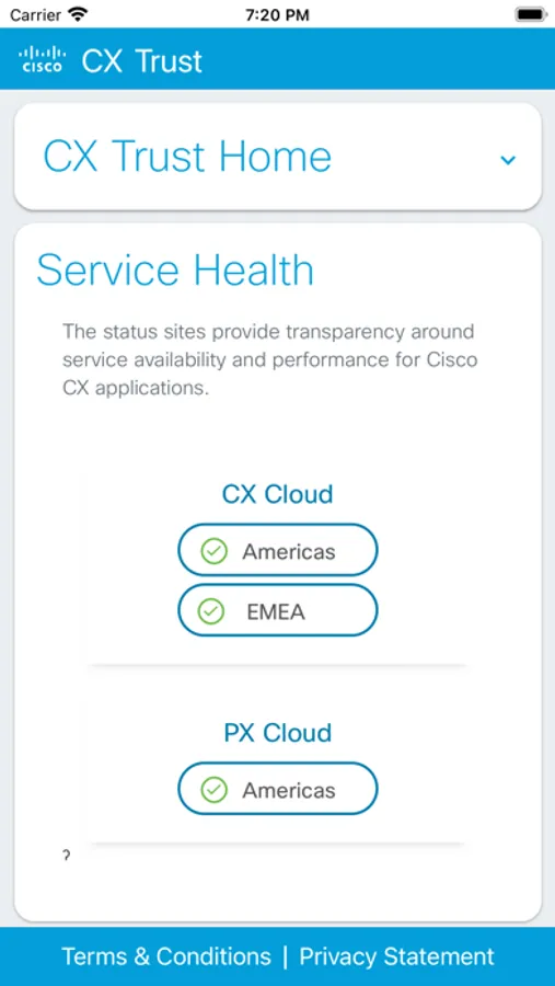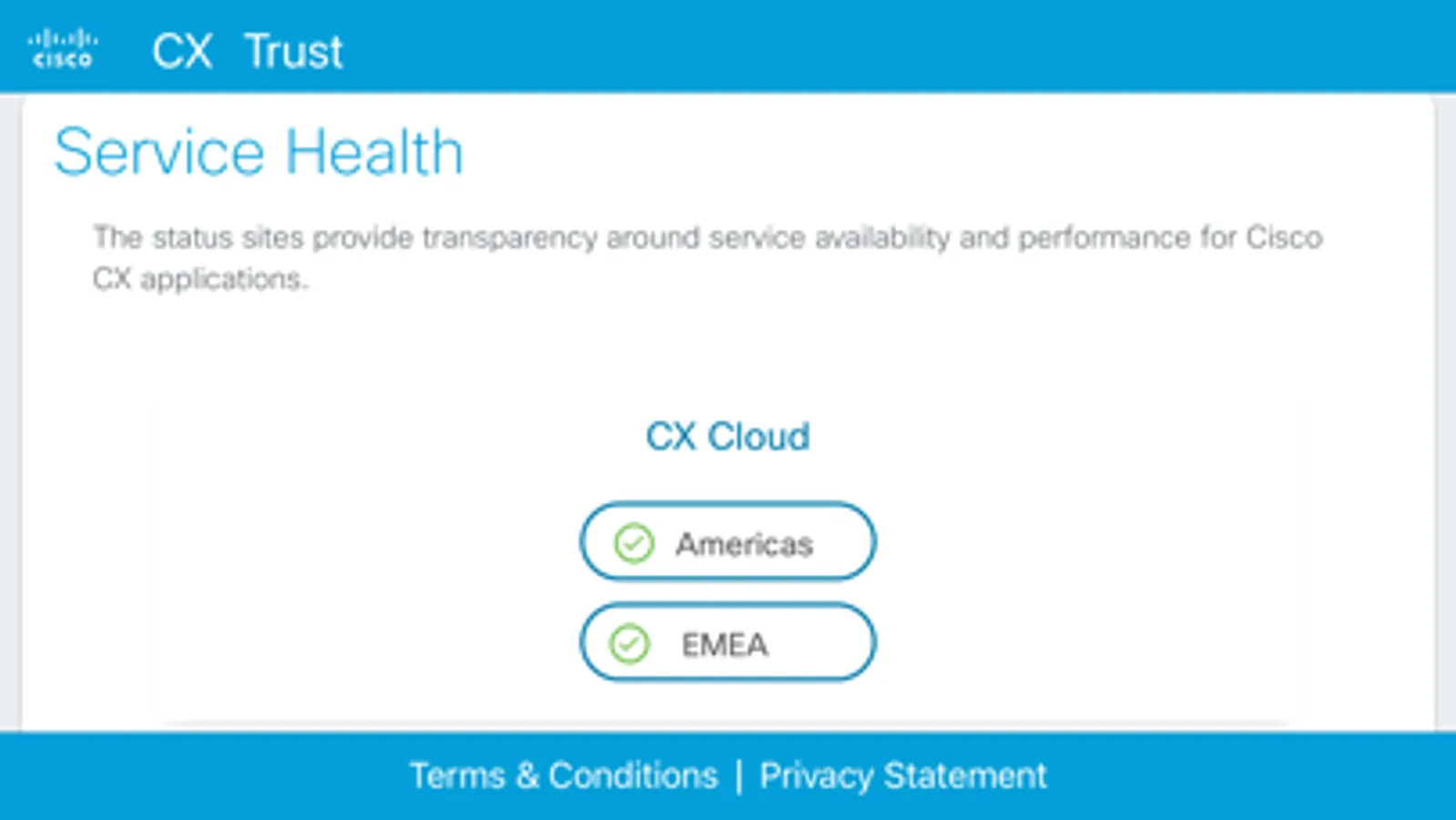 CX Trust is the Cisco CX's home for real-time information on system availability, performance, security and compliance of customer and partner facing applications.