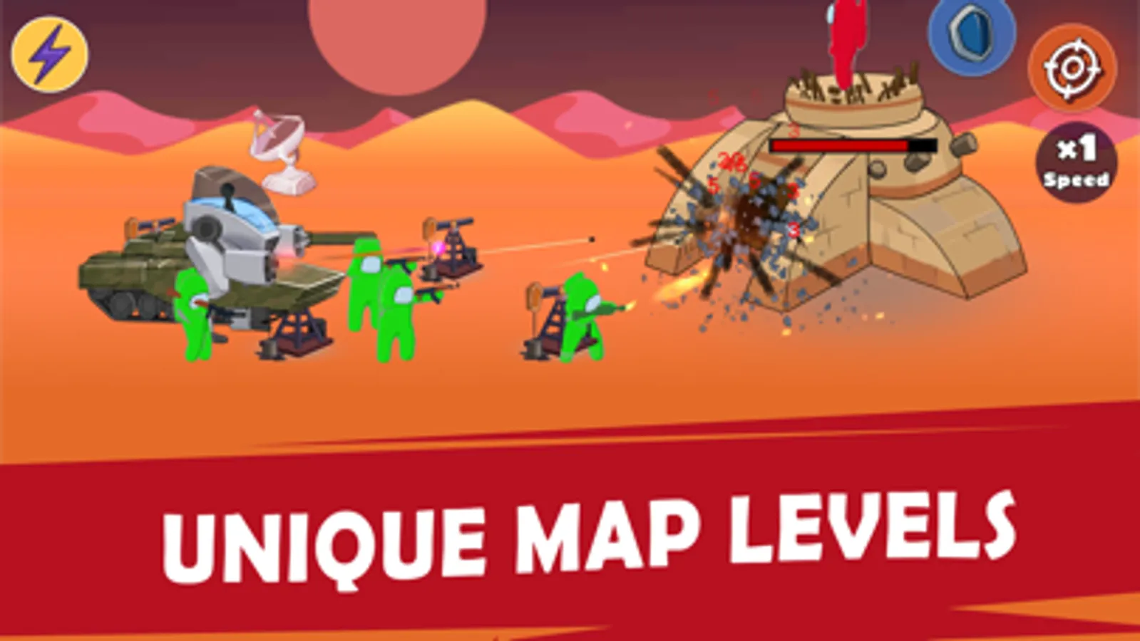 Experience a thrilling imposter adventure in campaign mode. Conquer new lands from Asia, Europe and ending with the Wild West. Immerse yourself in the era of modern battles and the legacy of great civilizations. Defend your base from the raid of enemy stickmen, tanks and fighters. Lay siege to the enemy tower and destroy it to win. Apply unique tactics for each battle and location. More than 50 unique tasks are waiting for you!