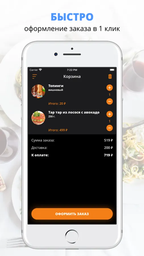 Скачивайте наше приложение, оформляйте заказ и наслаждайтесь любимой едой, где бы Вы ни были! Приятного аппетита!