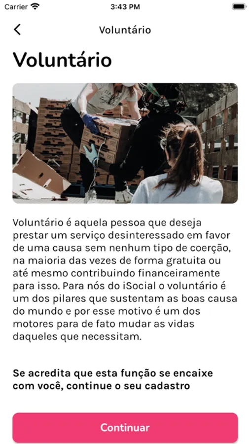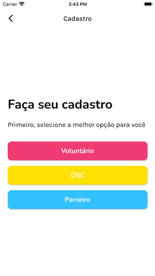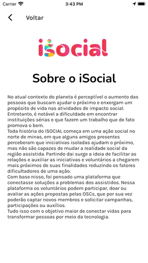Com base nisso, foi pensado uma plataforma que conectasse soluções a problemas dos assistidos. Nessa plataforma os voluntários podem participar, doar ou avaliar as ações propostas pelas OSCs, que por sua vez poderão captar novos membros e solicitar campanhas, participações ou auxílios.