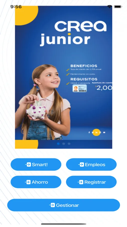 Aplicación móvil informativa de la Cooperativa de Ahorros y Créditos CREA, en la cual se promueve la interacción entre los socios y la cooperativa, ademas de ofrecer diferentes servicios para el público en general.