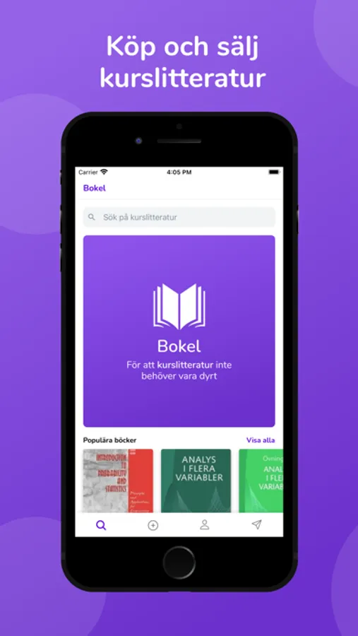 Bokel är en marknadsplats för att snabbt och enkelt köpa och sälja kurslitteratur. Spara pengar på att köpa billig kurslitteratur och tjäna pengar på att sälja kurslitteratur! Du finner enkelt både säljare och köpare på Bokel.