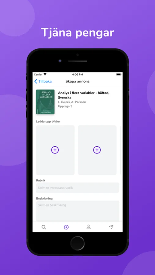 * Ladda upp annonser genom att skanna bokens streckkod.