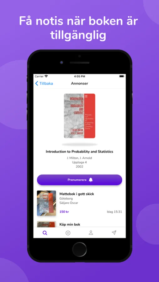 * Prenumerera på en bok och få notiser när nya annonser läggs ut.