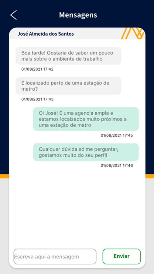 8. Contato direto com candidato a qualquer dia e horário, em caso de Match. Sem sobrecarregar seu chat de candidatos que não aprovaram para a vaga.