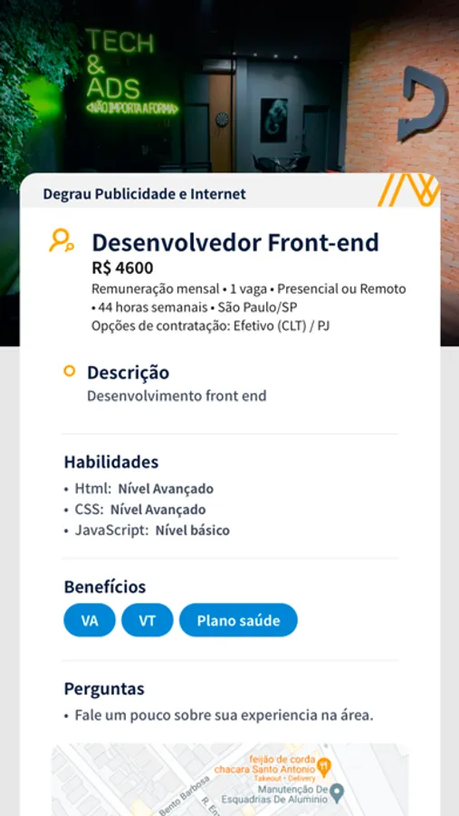 2. Geolocalização inicialmente nacional, visualizar a qualquer momento e em qualquer lugar vagas em qualquer região.