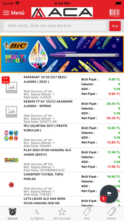 - Cihaz Kamerası ile Barkodu Taratarak Ürün Arama